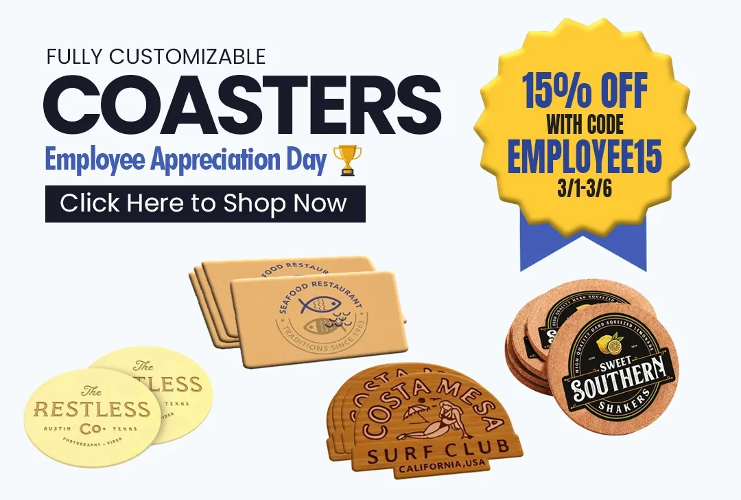 - Choose your delivery options and place your order with Custom Coasters Now.