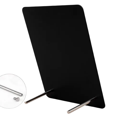 A Magnetic Desk Display is a sleek and modern way to showcase signage on a desk or tabletop. It is made of transparent metal material; this display offers a clear view of the Attached sign or label while providing a clean and professional appearance. Aside from attaching inserts, it is possible as well to write down in this desk display using materials like chalk for personalized branding and easy updates.