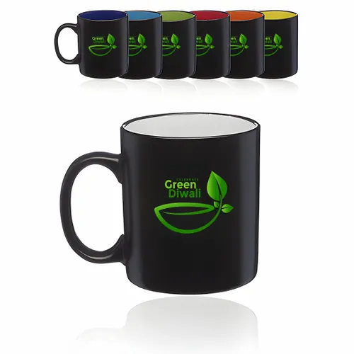 Introducing our exquisite Matte Bicolored Ceramic Coffee Mugs with a captivating twist of color on the interior. These 11 Oz, two-toned matte mugs combine style and subtlety to create a truly remarkable coffee-drinking experience. Crafted with meticulous attention to detail, the smooth molded ceramic composite ensures lasting durability and a luxurious tactile sensation. The alluring black matte finish on the exterior exudes sophistication, while the color interior adds a delightful pop of vibrancy. To further enhance your comfort, we've designed these mugs with an easy-to-hold C-curved handle, providing a secure grip and making every sip a pleasure. Whether you're starting your day with a rejuvenating cup of coffee or enjoying a serene moment with your favorite tea, these mugs are the epitome of elegance. Elevate your beverage indulgence with our captivating Coffee Mugs!