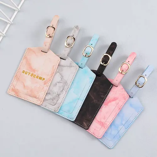 Flip Marbling Luggage Tags - Introducing our Flip Marbling Luggage Tags – the perfect blend of style and functionality. Crafted from premium quality PU Leather, these tags add a touch of elegance to your travel gear. Designed to withstand the rigors of travel, they feature a secure buckle strap and a privacy flap to protect your personal information. Elevate your journey with our Luxury Leather Luggage Tags and travel with confidence and style.
