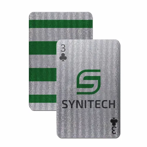 • Cool, modern, and striking. These brushed silver playing cards bring a contemporary edge to classic gameplay. Durable and eye-catching, they’re equally at home on a gaming table or as a standout promotional gift.